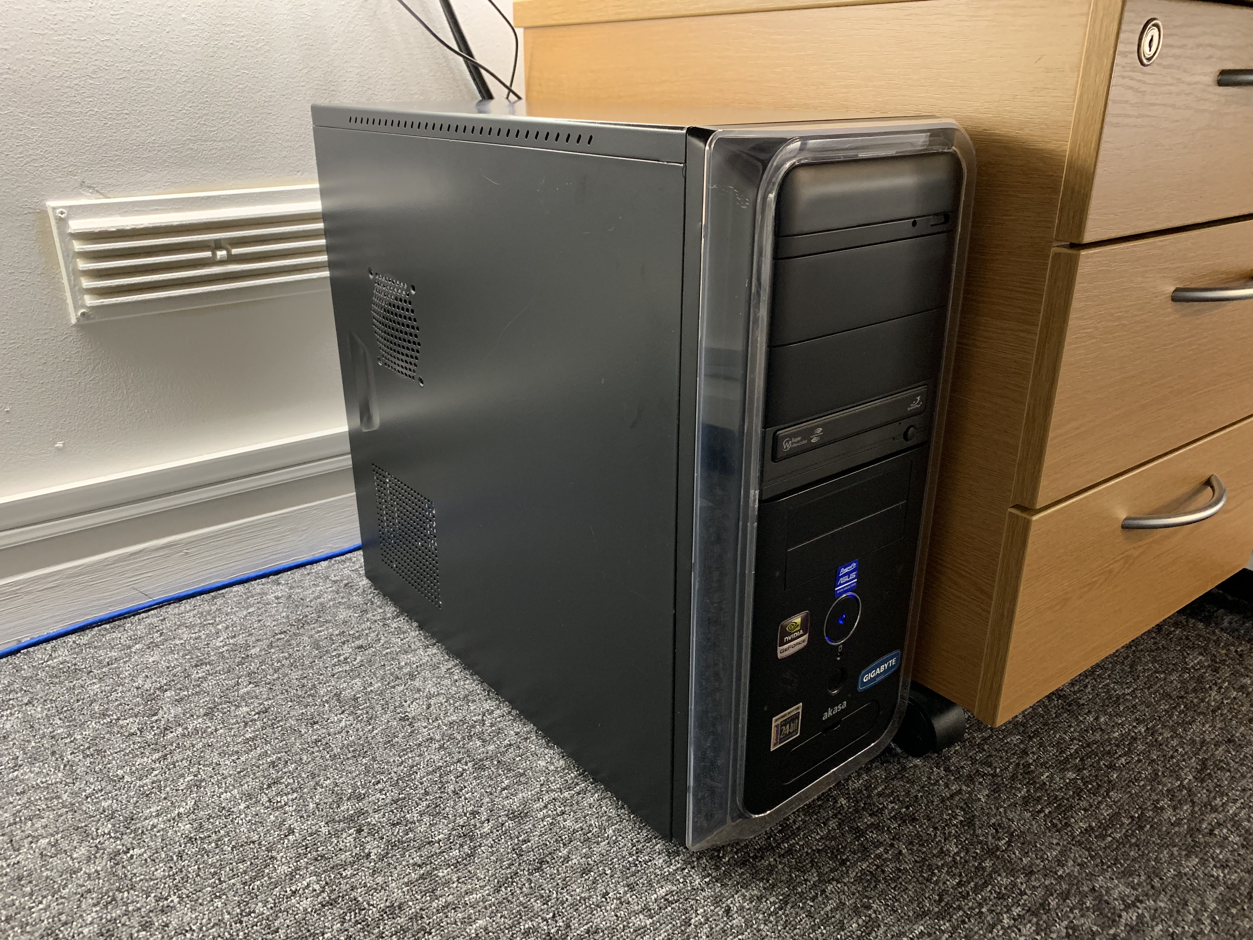 This previous main development system was built to be fast enough to cope with anything I'd have been likely to be doing for quite some time, although I only used it for tasks which required high performance hardware (for everything else, I used my secondary development PC which had lower power consumption). Faster hardware consumed more power, so power saving technologies were enabled as well, and the CPU wasn't regularly overclocked so it'd have a longer life. Interestingly, this quad core CPU based system with 24" widescreen TFT monitor, consumed less power under light load, than the earlier AthlonXP 2400+ based system with a 17" CRT did when it was idle, despite the new system being so much more powerful.