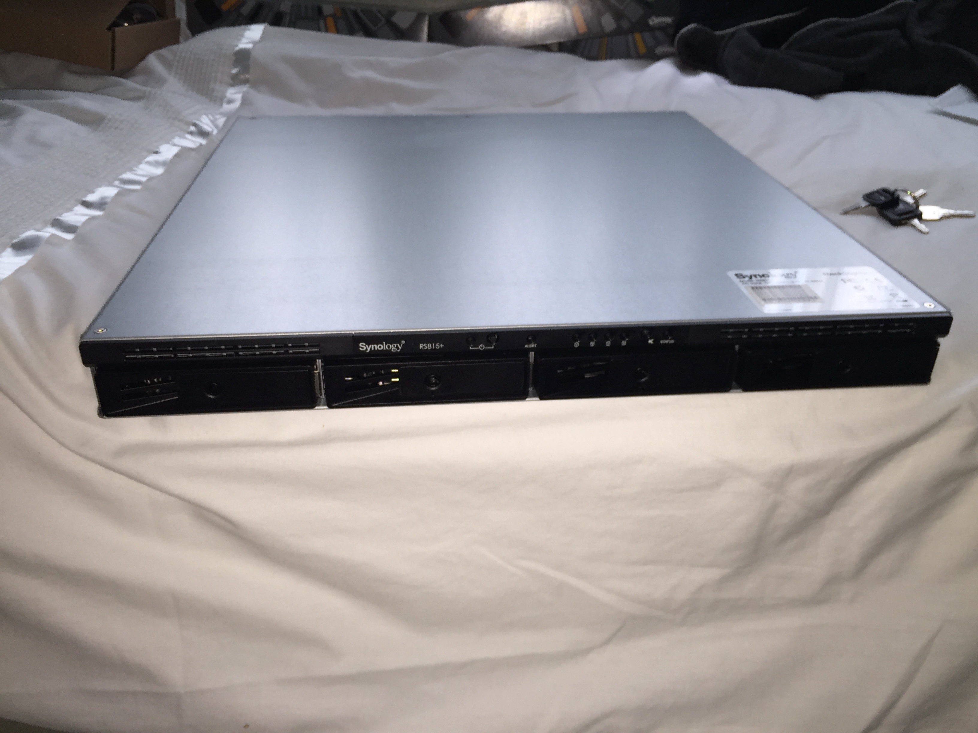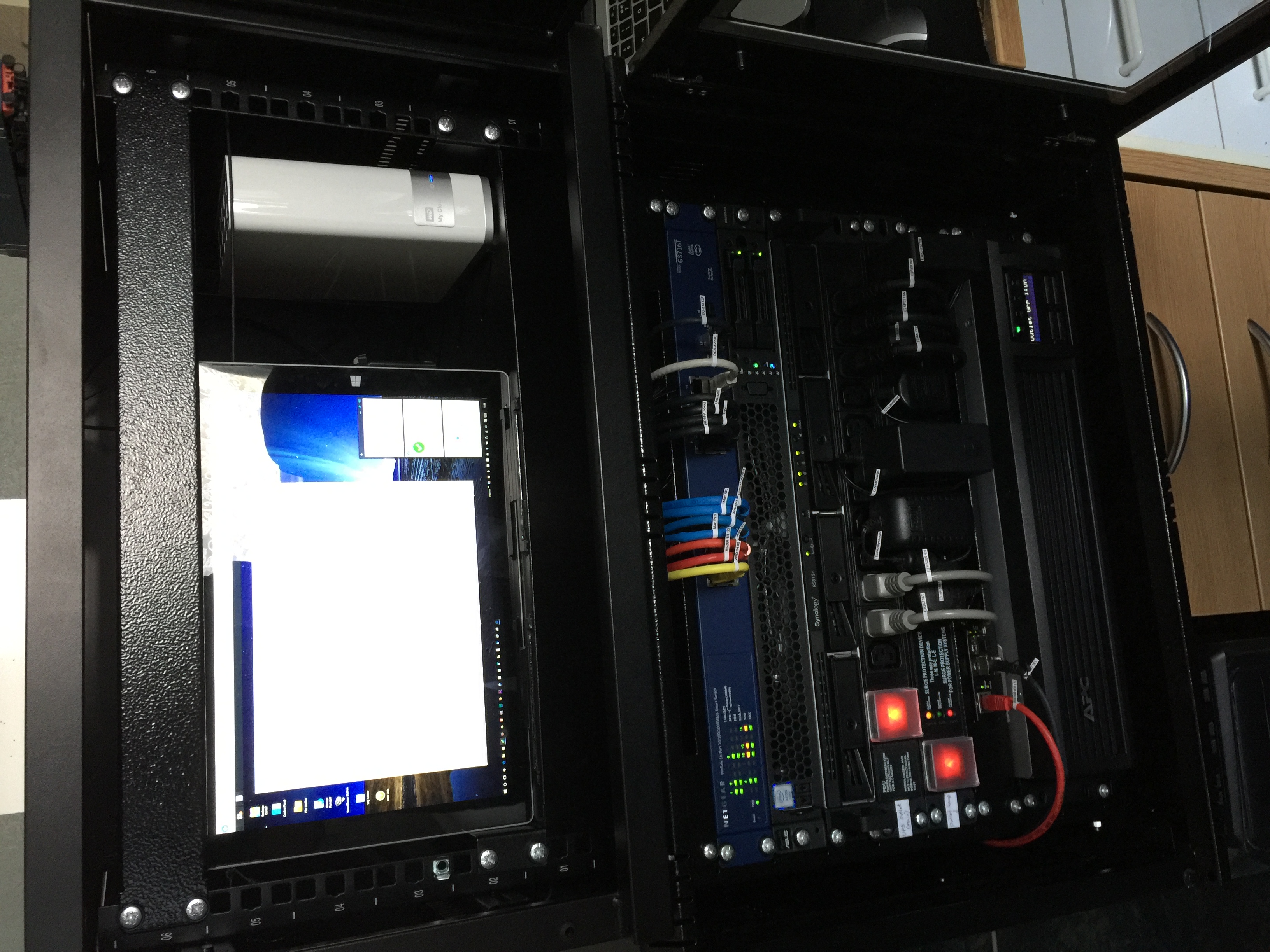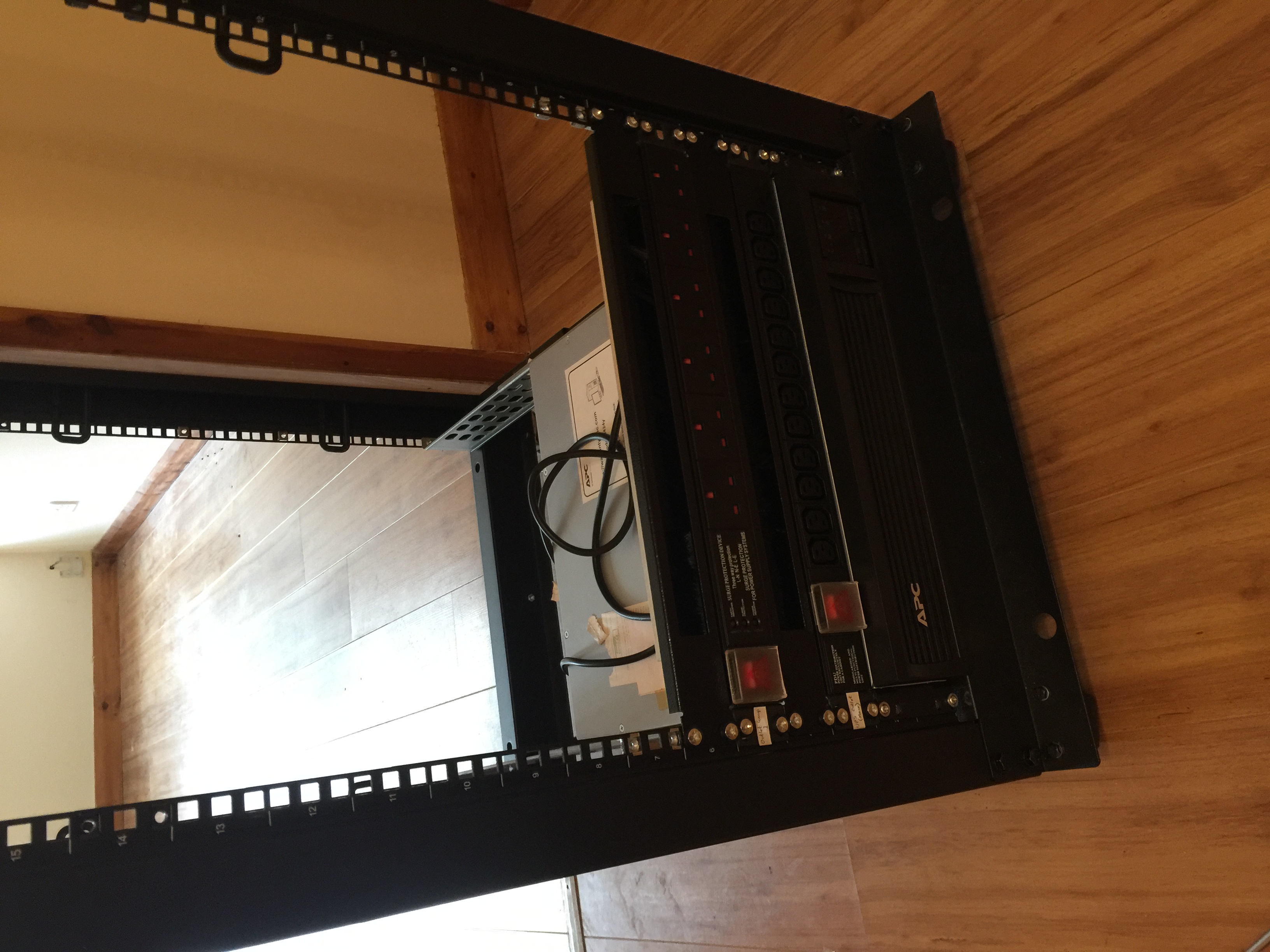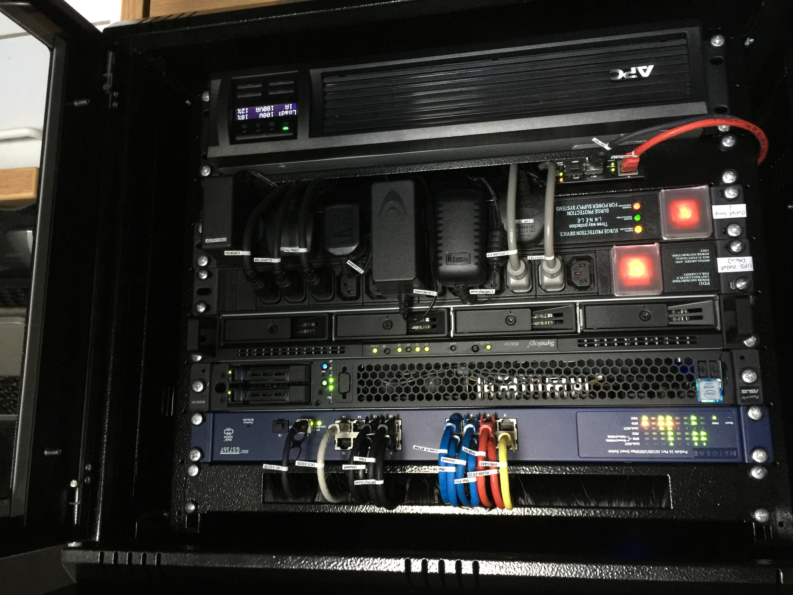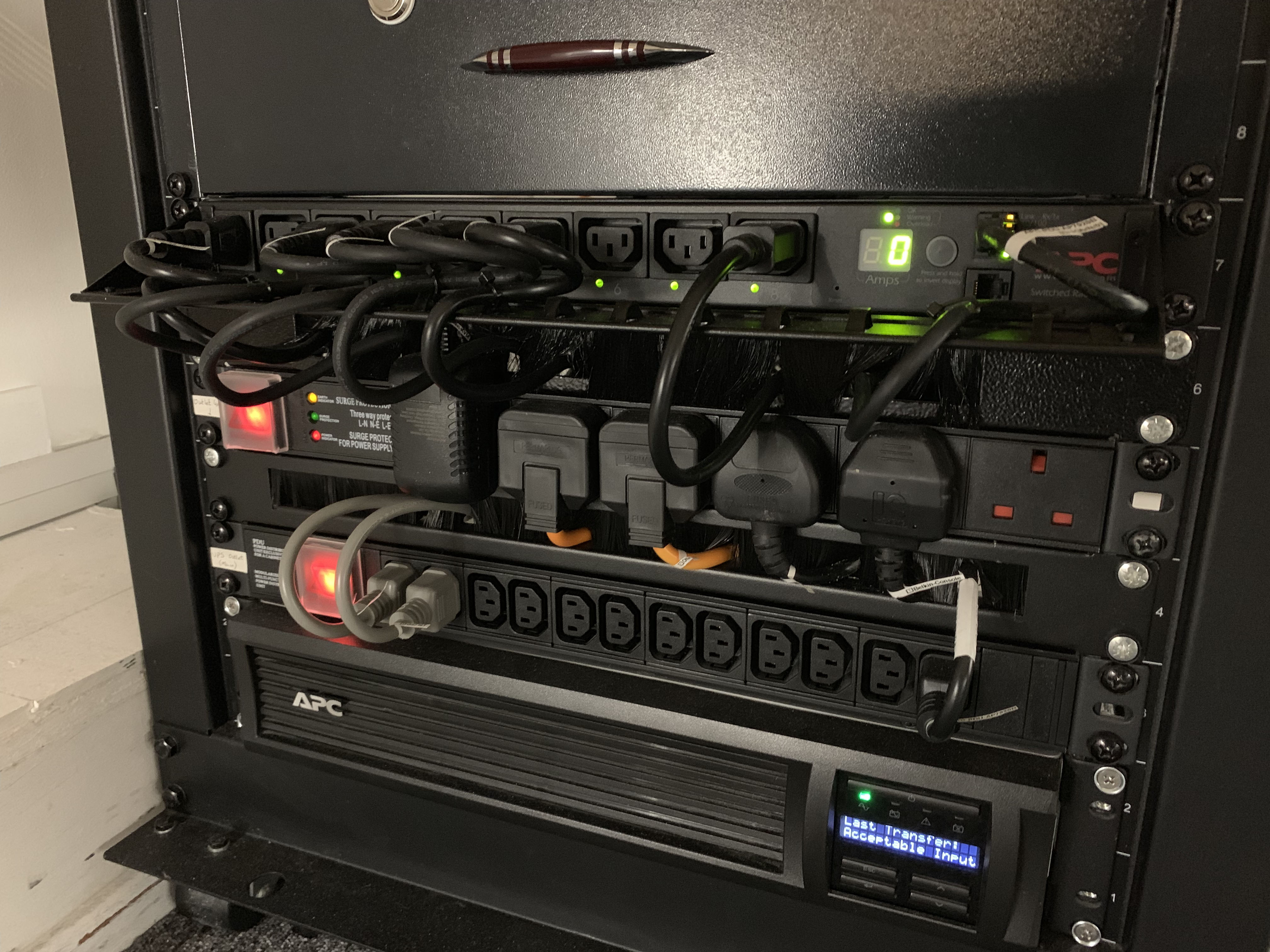 Thumbnail imageThis little journey led to me initally building a 19 inch (which describes the width), 9U ('U' being a single height unit in a rack) server in an enclosure. This setup was comprised of a 2U APC SmartUPS SMT1500, 1U Asus RS200-E9-PS2 server (Intel Xeon E3-1225 V5 with 32GB DDR4 ECC SDRAM, SanDisk X400 M.2 SSD and dual 960GB SanDisk SDSSDHII-960Gs in RAID 1), 1U 6-way UK 13A PDU, 1U 12-way IEC C13 PDU, 1U Netgear GS716T 1Gbps switch, and 1U Synology RS815+ RackStation NAS with 4x 6TB Western Digital Red Pro hard drives (for RAID 5). I fitted a Startech 10GbE SFP+ PCIe card to the Asus server to have fast access to the RAID SSDs.