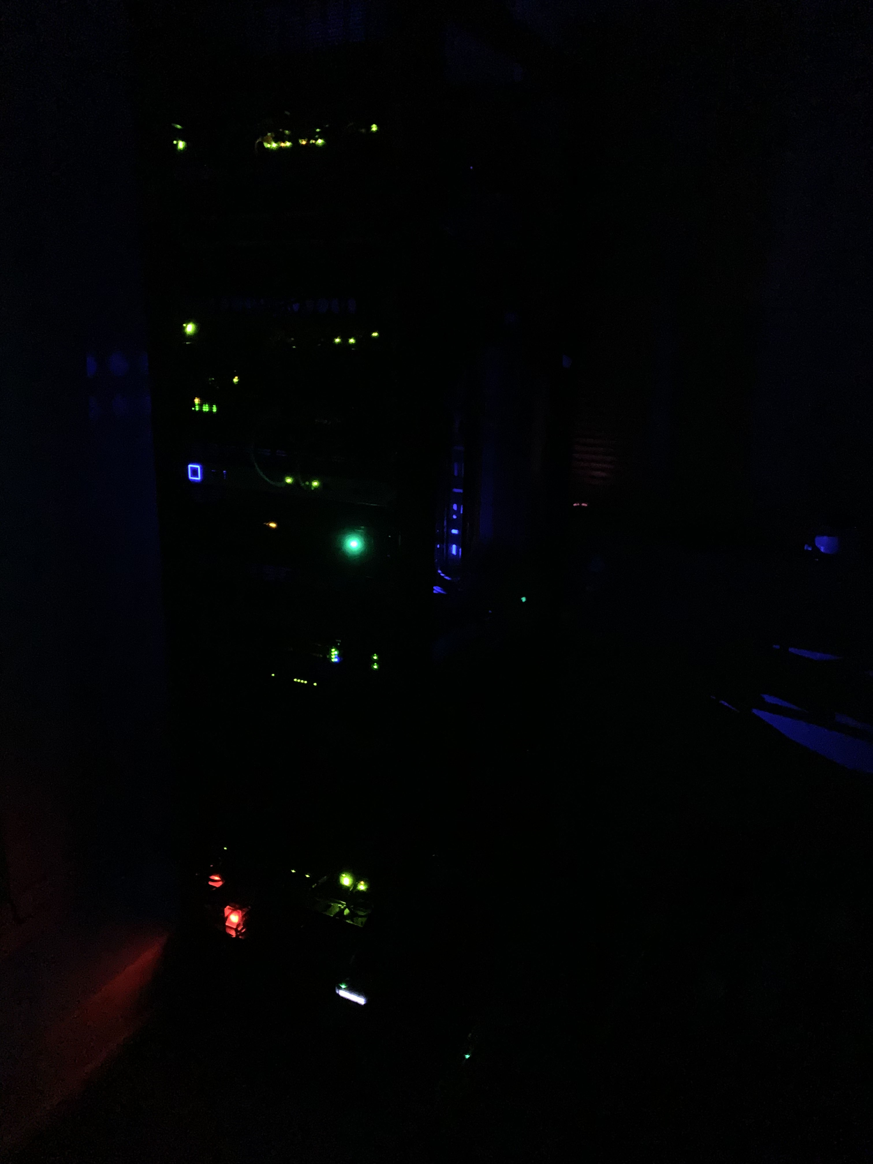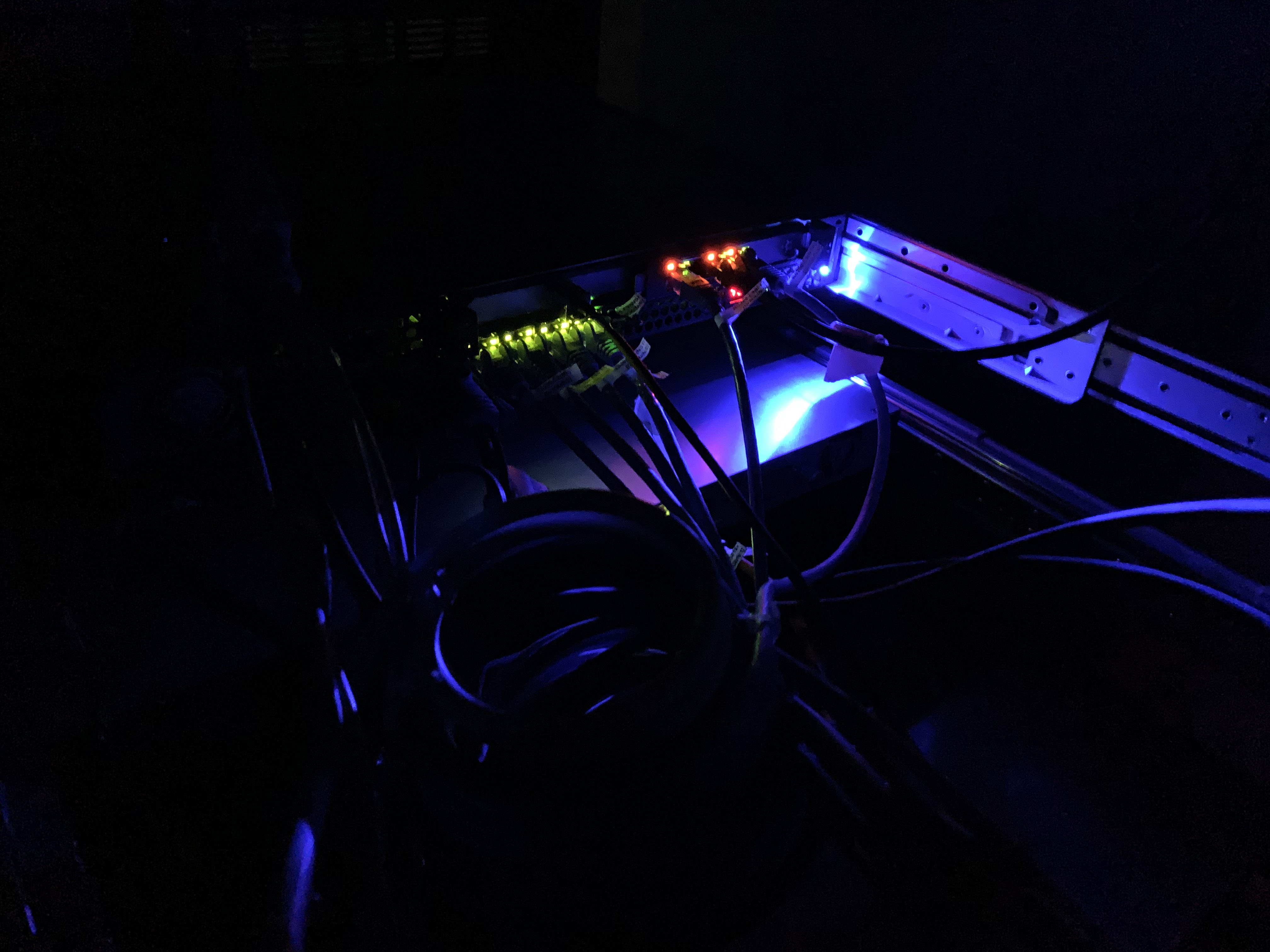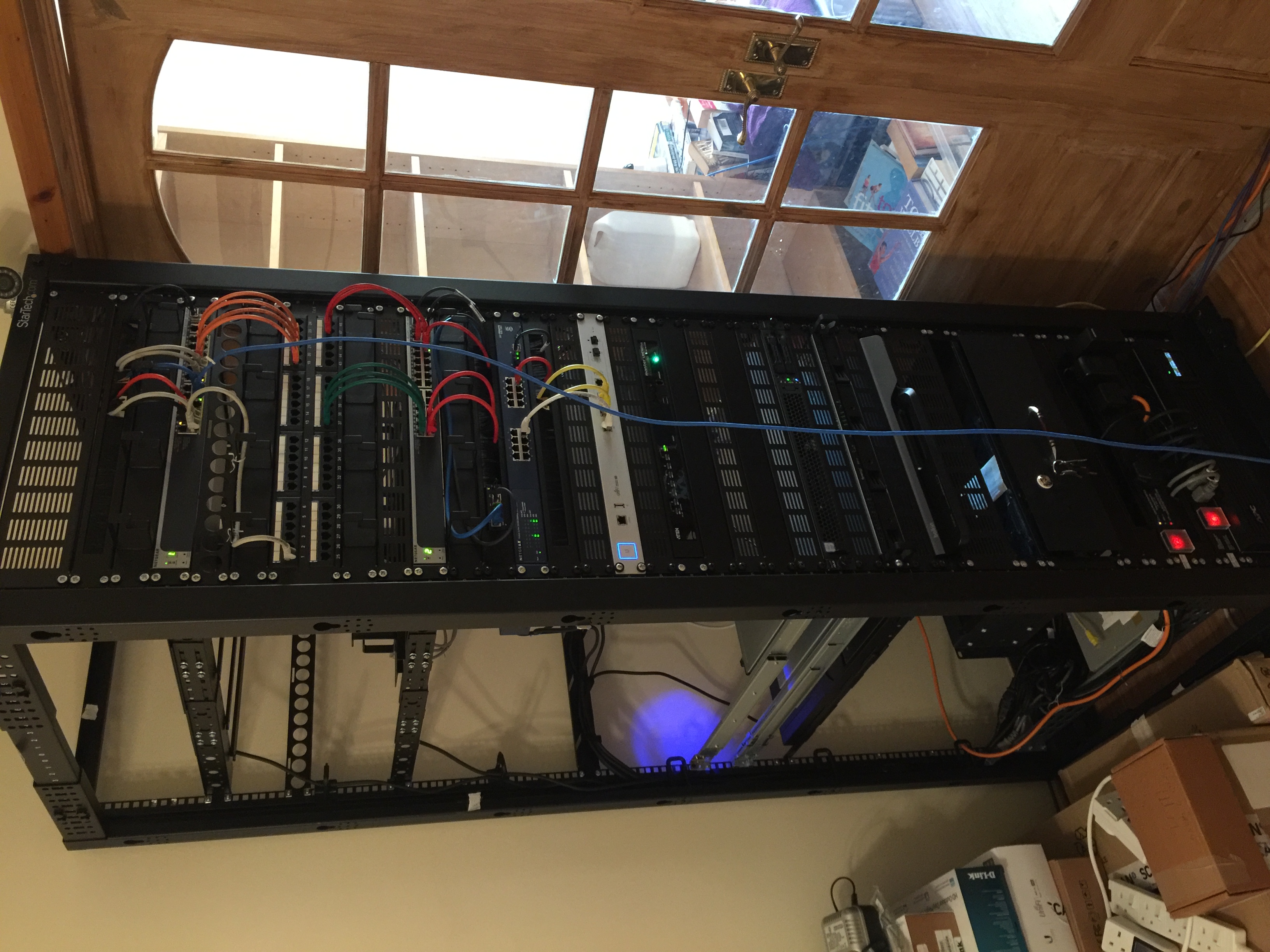 I also added an Aten CS1308 8-port KVM, and a Belkin rack console with built-in keyboard and 1280x1024 LCD screen. The last pieces of the jigsaw were the addition of a UniFi Security Gateway 4 Pro and UniFi AP-AC-Pro WiFi access point (previously the server equipment was protected behind a NAT firewall provided by my ISP's router, with the router providing WiFi). After the UniFi gateway was installed, this took over the role of protecting the devices, assigning Dynamic Host Control Protocol (DHCP) leases and IP address reservations, and handling Virtual Private Networking (VPN). The end result is a satisfying blinkenlights show and a fantastic collection of networking kit.